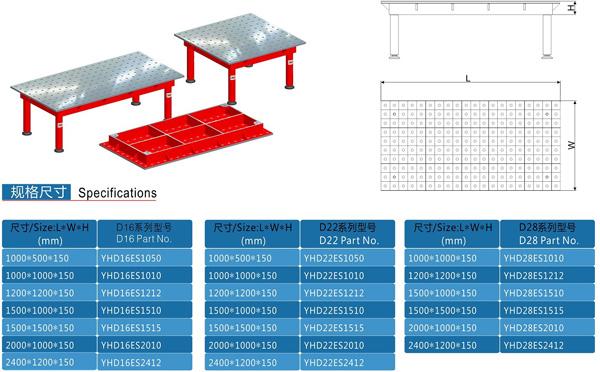 工裝平臺(tái)的選用需根據(jù)產(chǎn)品的大小,形狀而定,鈑金類及小型鋼結(jié)構(gòu)件多采用D16系列的平臺(tái);