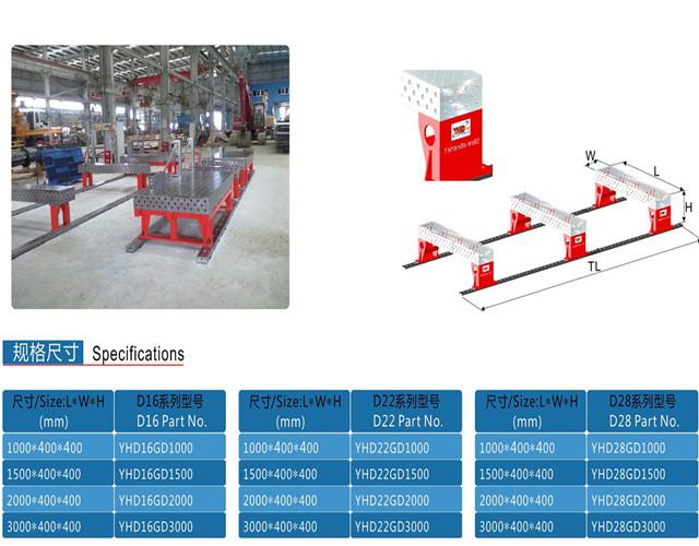 D28/D16 三維柔性軌道式平臺用于較大或 型的鋼結(jié)構(gòu)焊接裝夾,列如:高壓線塔、舞臺鋼結(jié)構(gòu)件、吊車鋼結(jié)構(gòu)力臂、挖掘機斗桿及動臂、戶外鋼結(jié)構(gòu)廣告架等場合。